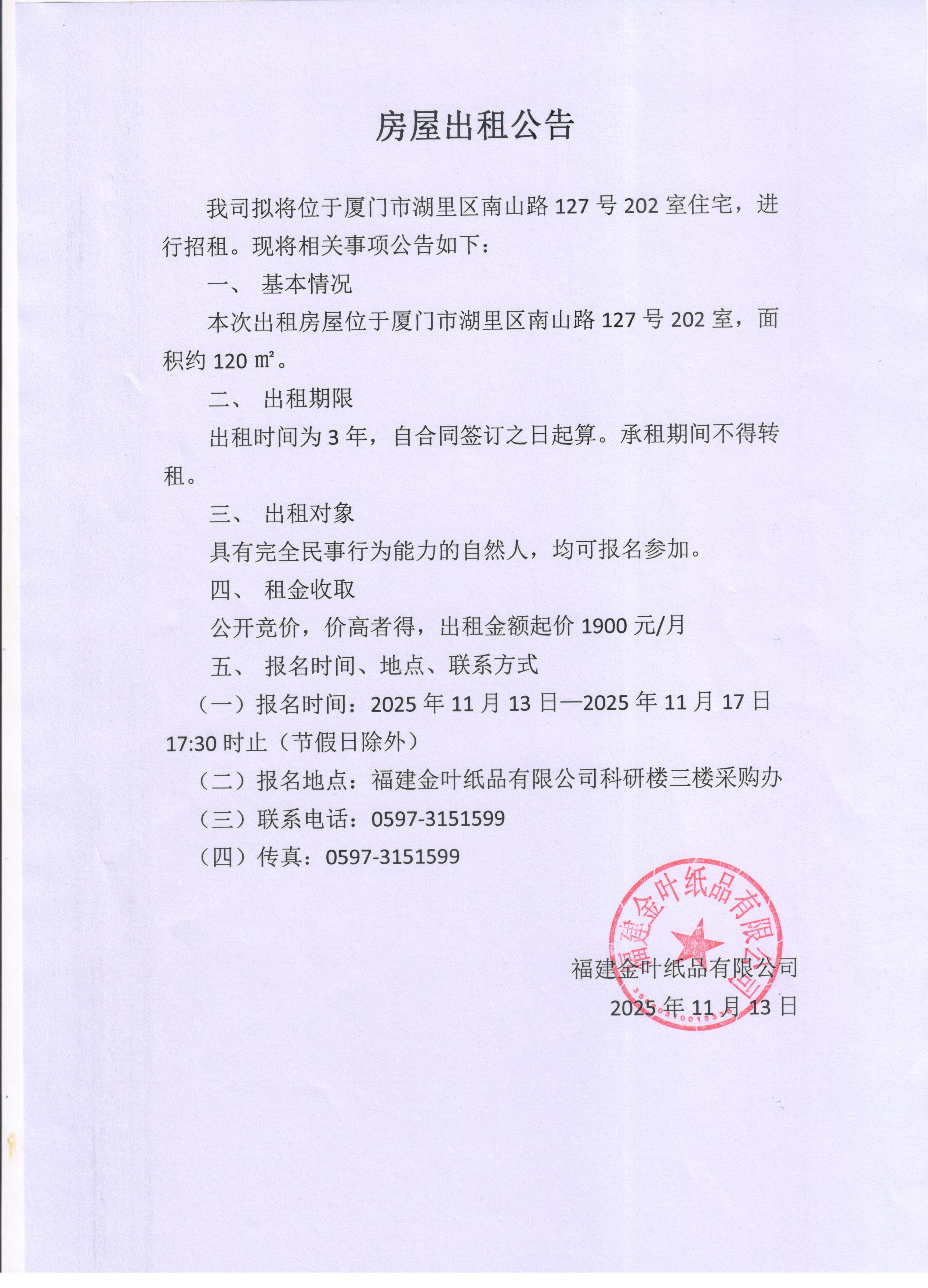 房屋出租公告